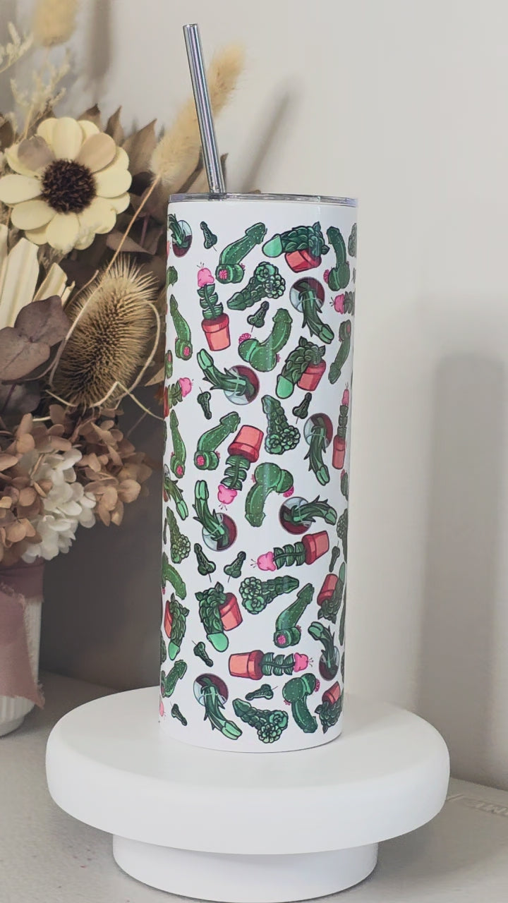 Stay refreshed on the go with these 20oz (591ml) sublimated stainless steel travel tumbler. Featuring vibrant, full colour wraparound printing, it's made with durable double-walled vacuum insulation to keep drinks hot for up to 6 hours or cold for up to 12. Perfect for daily commutes, workouts, or outdoor adventures—leak-resistant lid and straws included.