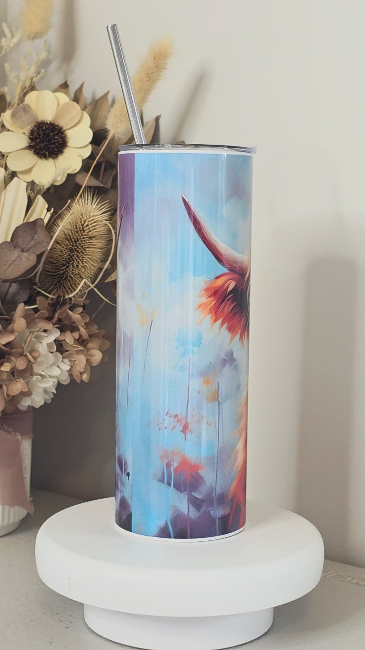 Stay refreshed on the go with these 20oz (591ml) sublimated stainless steel travel tumbler. Featuring vibrant, full colour wraparound printing, it's made with durable double-walled vacuum insulation to keep drinks hot for up to 6 hours or cold for up to 12. Perfect for daily commutes, workouts, or outdoor adventures—leak-resistant lid and straws included.